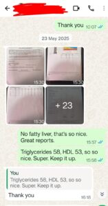 Initially she was little reluctant to follow, because she found it to be restrictive. Explained her the science behind 100g carb max per day and what causes fatty liver.